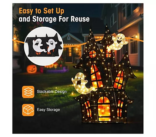 62"H Lighted Halloween Haunted HouseOutdoor Decor