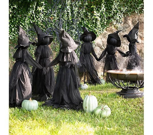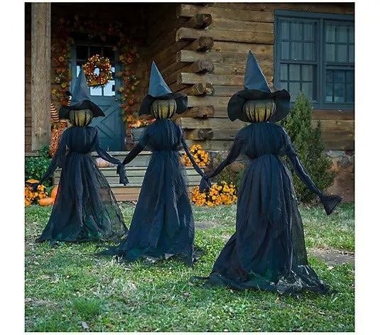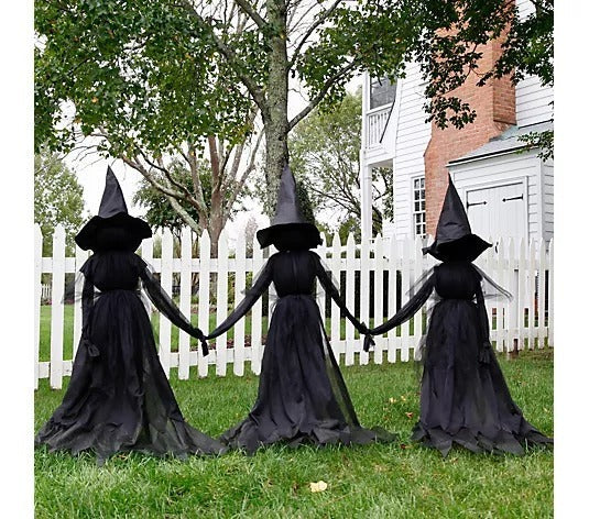Bewitch your front yard with this wicked trio of lighted witches dressed all in black for a spooktacular display.